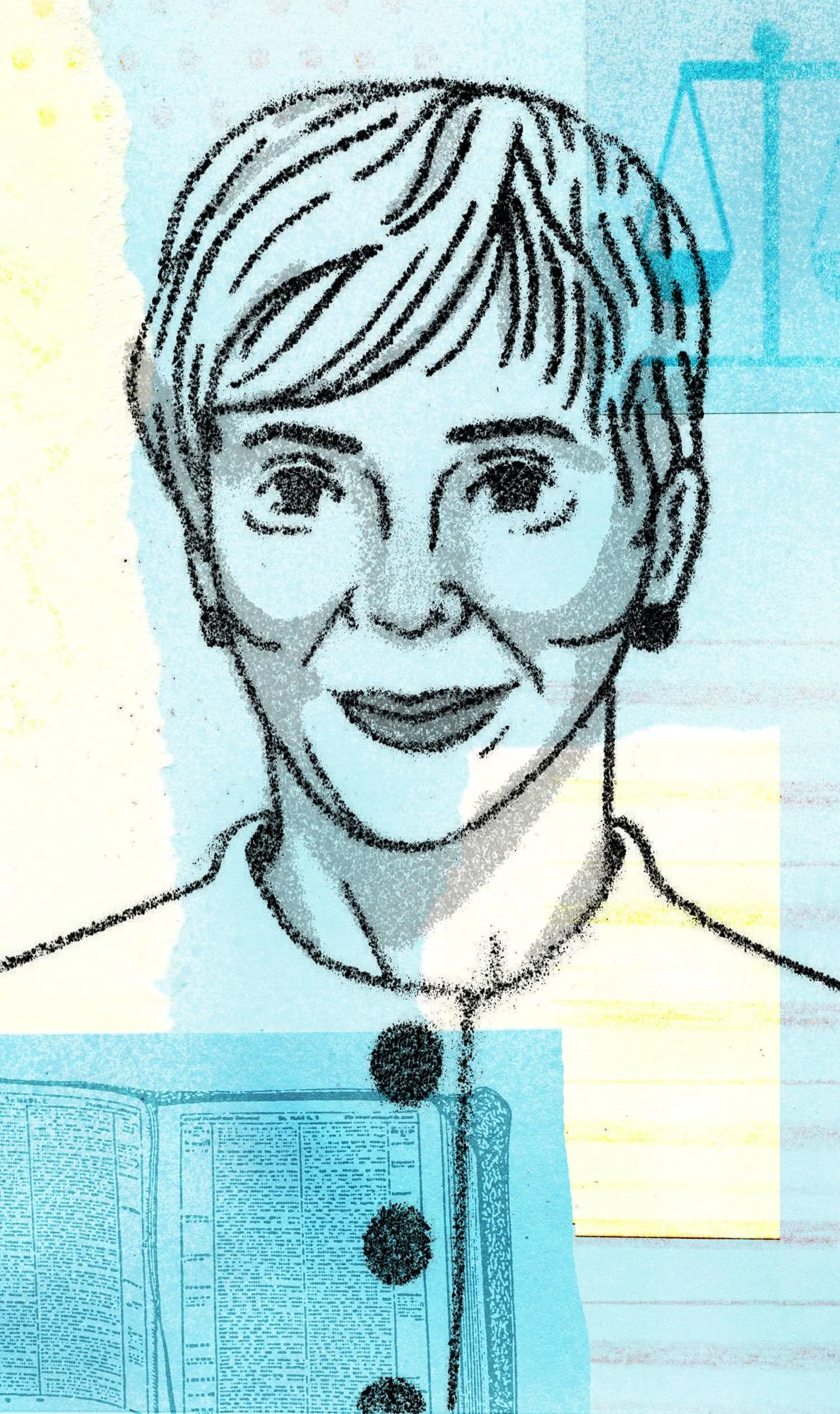 Portrait of author Erna Paris. Made with spray paint & collage.